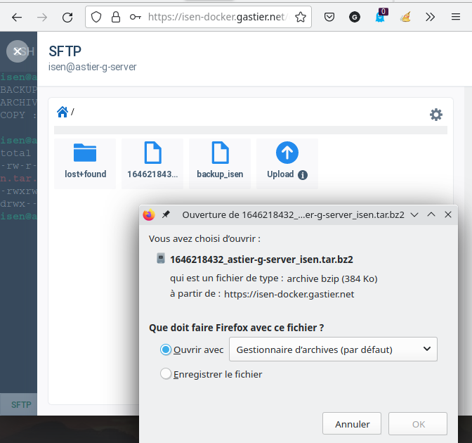 L’outils de backup sauvegarde uniquement les répertoires /home/isen /root/ et /etc/